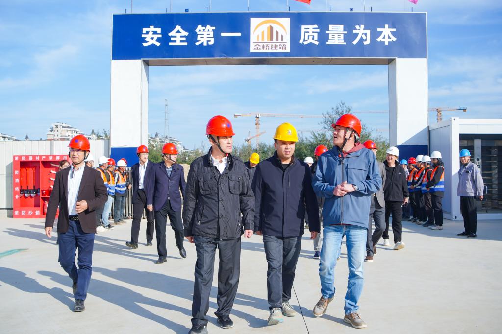 辛董事长一行深入到各个施工区域,实地查看了大学生活动中心、食堂、学生宿舍等核心功能区域的建设进展,听取项目负责人关于工程规划、功能布局、配套设施整体进展及后续计划的汇报,询问工程进度、质量管控和安全保障等关键环节的具体举措,并与现场施工管理人员、技术人员深入交流。