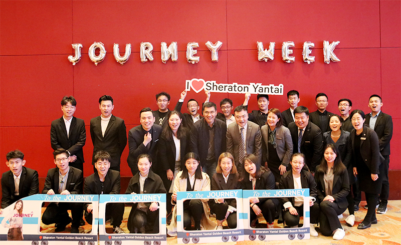 烟台金沙滩喜来登度假酒店是万豪集团旗下的国际五星级酒店品牌,正值酒店“踏上职业旅程”文化周之际,总经理韩卫东、人力资源总监张帆、招聘经理战理岩等高管层带领师生参观了酒店各个区域,校企双方沿途交流分享经验。