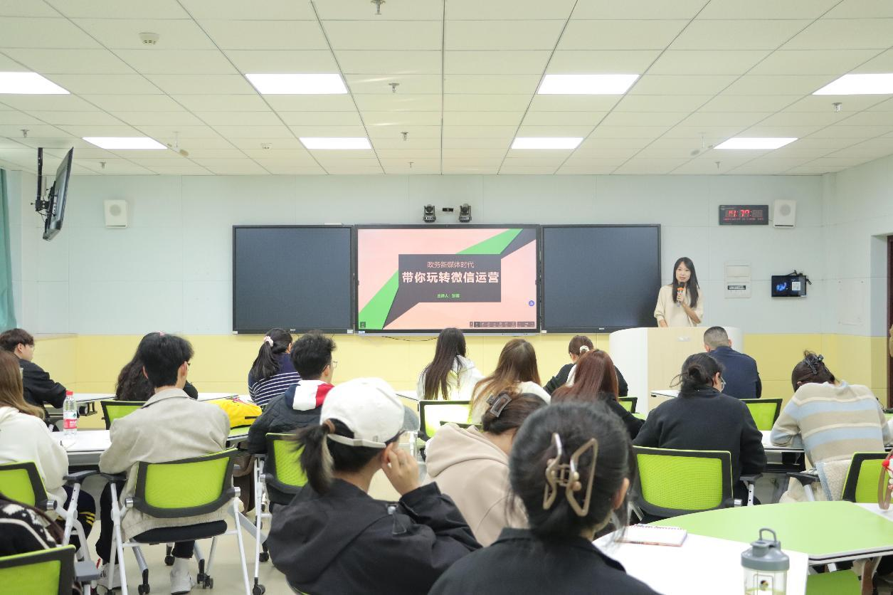 资深记者、新媒体运营团队负责人张馨首先进行分享。她结合多年采编与新媒体运营经验,围绕微信公众号及抖音、视频号等平台的内容策划与运营展开了系统讲解。结合其先后负责运营的众多政务新媒体账号丰富案例,分析了内容策划中的选题方向、文案撰写、视觉呈现及用户互动等环节的操作方法,为校园新媒体内容制作提供了参考。